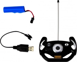 A kormányt formázó távirányító gombokkal és fém antennával a jobb játék irányíthatóságért.