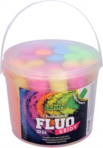 - A készlet 20 db fluoreszkáló krétát tartalmaz, praktikus vödörben.