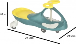 A gyermek a kormány forgatásával szabályozza az irányt és a sebességet – az egyenletes, játékos mozgás fejleszti a koordinációt és az egyensúlyt.