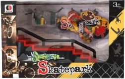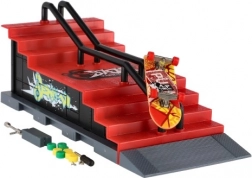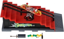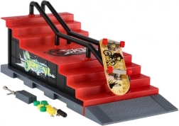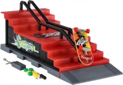 Ez a fingerboard gördeszkapark zsebméretben nyújt valósághű fingerboarding élményt. A masszív műanyag konstrukció lépcsővel, rámpával és fém korláttal tökéletes grindokhoz, ollie-hoz és további trükkökhöz. A csomag része egy 8 cm hosszú fingerboard, valamint apró szerszámok és alkatrészek a csavarozható beállításokhoz.