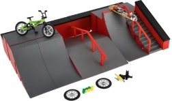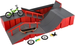Ez a részletgazdag skatepark zsebmértetben nyújt valósághű gördeszkás élményt. A csomagban ujjdeszka, mini BMX, különféle rámpák, korlátok és lépcsők találhatók – mind tartós műanyag kivitelben a hosszú élettartamért. Az elemek könnyen kombinálhatók és állíthatók, így saját park-konfigurációt építhetsz pontosan az elképzeléseid szerint.
