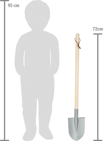 A szürke, hegyes ásót a gyerekek igényei szerint tervezték. Súlyának és formájának köszönhetően kényelmes a használata, és támogatja a gyerekeket a finommotorika fejlesztésében és a természethez fűződő kapcsolat erősítésében. Az ásó fa nyele jól illik a gyerekek kezébe, a fém fej pedig tartós, és alkalmas ágyásokban és homokozóban végzett munkára is.