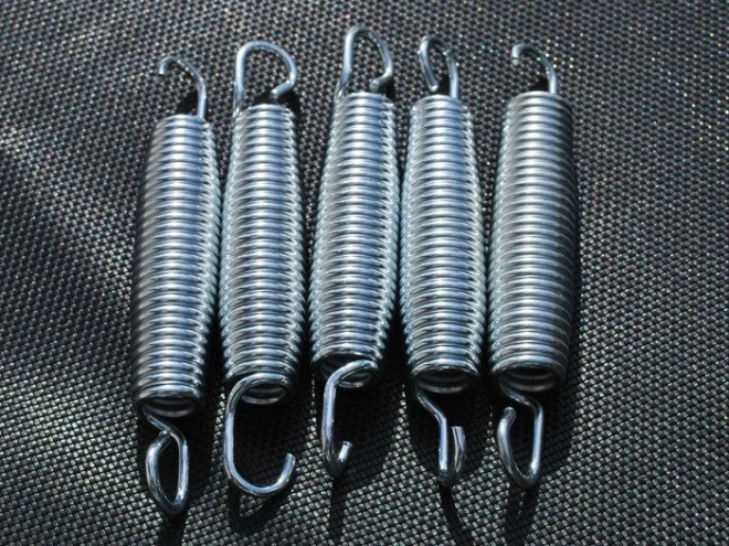 A rugók 3 mm vastag huzalból készülnek, amely az ötvözetnek köszönhetően ellenáll a deformációnak. Felületük edzett és tűzihorganyzott, ami magas ellenállást nyújt a korrózióval és kopással szemben.