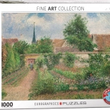 Eredeti EUROGRAPHICS puzzle Eragny zöldséges kertjének motívumával, 1000 darabbal, nem szabványos stancolással és szokatlan formákkal, valamint magasabb nehézségi szinttel. Összerakva a mérete 67,6 × 48,9 cm.