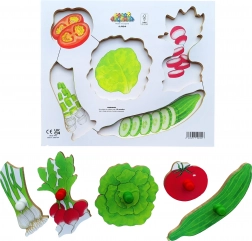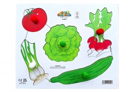Ez a fa puzzle lehetőséget nyújt a gyerekeknek, hogy megtanulják felismerni a különböző zöldségfajtákat. A szorítói a kirakónk megkönnyítik a fogást és kezelhetőséget.