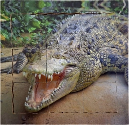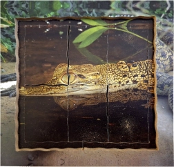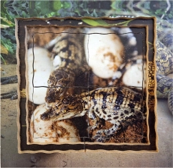A készlet négy különböző jelenetet tartalmaz a krokodil életével kapcsolatban, beleértve a nyitott állkapcsot és a tojásokat.