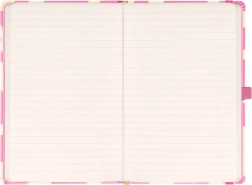 Stílusos, rózsaszín jegyzetfüzet mindennapokra kemény borítással, gumipántos zárással, tollhurokkal és belső zsebbel. 172 pontozott oldalt kínál sárga papíron, a praktikus 13 × 21 cm-es formátumban az ötletekhez, jegyzetekhez és a naplóíráshoz.