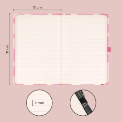 A rózsaszín NOTIQUE elegáns jegyzetfüzet ideális választás mindazoknak, akik megbízható társra vágynak a mindennapokban. 13 × 21 cm-es méretének köszönhetően kényelmesen elfér a kézitáskában vagy a hátizsákban, és bármikor, bárhol készen áll, hogy rögzítse ötleteit, feladatait és személyes észrevételeit.