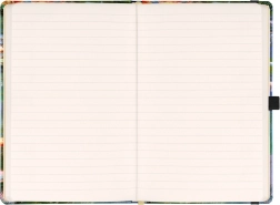 Elegáns, vonalazott jegyzetfüzet Claude Monet motívummal, 13 × 21 cm-es méretben, kemény borítóval és gumipántos zárással, tollhurokkal és belső zsebbel. Belül 172 oldal sárga papíron áll rendelkezésre az ötletekhez, naplóíráshoz és munkajegyzetekhez.