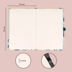 Értékelni fogja a mindennapi használathoz átgondolt részleteket: biztonságos zárást adó gumipánt, tollhurok és belső zseb névjegyeknek vagy apróságoknak. A sárga papír kíméli a szemet, a 172 oldal pedig elegendő helyet biztosít egy teljes évnyi inspirációhoz.