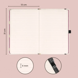 A tollhuroknak köszönhetően az íróeszköz mindig kéznél van, a belső zseb pedig helyet ad apróságoknak, névjegyeknek vagy matricáknak. A 172 oldal sárga papír bőséges teret biztosít ötleteknek, naplóbejegyzéseknek és munkahelyi jegyzeteknek.
