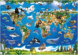 Vidám gyerekpuzzle a világ térképével és állatkákkal – remek eszköz a földrajz és az egyes kontinensek faunájának megismeréséhez. A 100 XL darab kényelmes összeállítást tesz lehetővé a kisebb kezeknek is, a színes motívum pedig azonnal magával ragadja a gyerekeket.