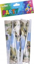 Varázsolj jó hangulatot minden bulin dínó mintás party trombitákkal. A 20 cm-es hossz könnyű használatot biztosít, könnyűek és biztonságosak gyerekeknek és felnőtteknek egyaránt. Remekül kiegészítik a dekorációt, és gondoskodnak az örömről és a hanghatásokról.