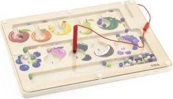 Ez a minőségi fa mágneses labirintus remek oktatójáték a gyerekek ügyességének fejlesztésére. A gyerekek a mágneses toll segítségével vezetik a színes golyókat a kijelölt útvonalakon, színek szerint válogatják őket, és képekhez – gyümölcsökhöz vagy számokhoz – párosítják. A játék fejleszti a logikus gondolkodást, a koncentrációt és a szem–kéz koordinációt.