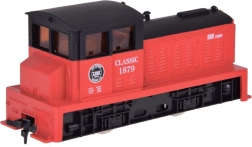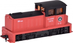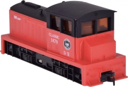 A piros, fekete tetős mozdony precíz kivitelével, megbízható futásával és extra súlyozásával biztos, stabil haladást nyújt az ívekben.
