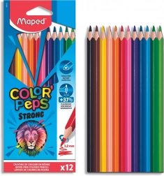 Maped Color'Peps Strong színes ceruzák élénk és tiszta színeket biztosítanak rendkívül tartós heggyel. Gyerekeknek ideális a háromszög alakú testnek köszönhetően, amely kényelmes fogást biztosít.