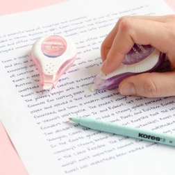 Az egyszer használatos Kores 2 Way Pastel javítógép biztosítja a precíz javítást az 4,2 mm széles és 8 m hosszú javítószalagjának köszönhetően.