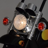 Design elemek közé tartoznak a krómozott kiegészítők, lángmintás matricák és a piros ülés, amelyek a motort még vonzóbbá teszik.