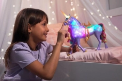 A fénylő egyszarvú érintésre interaktív fényhatásokkal reagál, amelyek szivárványos élményt nyújtanak.