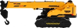 Ez a részletgazdagon kidolgozott, lánctalpas építési daru mindent tud, amit a gyerekek a valódi gépekben szeretnek: tekerővel állítható gém, működő horog és lendkerék az akciódús haladásért. Kompakt, 8 × 8 × 26 cm-es méretének köszönhetően kiválóan illik a házi építkezéshez és a gyerekszobába egyaránt.