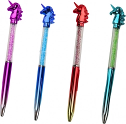 Elegáns golyóstoll egyszarvú figurával és átlátszó testtel, amelyet csillogó kövecskék töltenek meg, így jegyzeteinek stílust és egy csipetnyi varázslatot kölcsönöz. A 0,7 mm-es kék betét biztosítja a sima írást. Tökéletes mindennapi használatra és ajándékkiegészítőnek is.