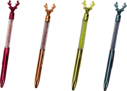 Elegáns golyóstoll finom szarvas figurával és átlátszó testtel, amelyet csillogó kövecskék töltenek meg, így az írásnak luxus hangulatot kölcsönöz. Elérhető kék vagy fekete tintával, finom 0,7 mm-es heggyel és kényelmes írásélménnyel a mindennapi használathoz és különleges alkalmakra is.