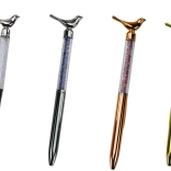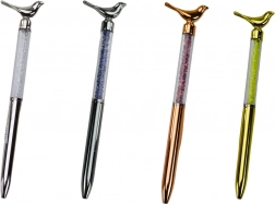 Ez a stílusos golyóstoll egyedi, madár alakú véggel és apró kövecskékkel töltött átlátszó résszel tűnik ki, amelyek mozgás közben finoman csillognak. Tökéletes iskolába, irodába vagy ajándékkiegészítőnek.