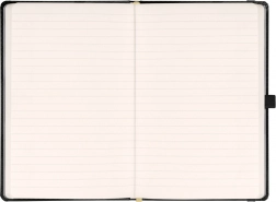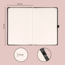 Elegáns NOTIQUE jegyzetfüzet kemény borítóval, gumis zárással, tollhurokkal és belső zsebbel. 172 oldal kellemes, sárga papíron minden ötlethez, naplózáshoz és munkahelyi jegyzetekhez. A kompakt 13 × 21 cm méret könnyedén elfér táskában vagy hátizsákban.