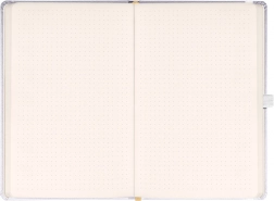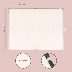 Az univerzális 15 × 21 cm-es formátumnak köszönhetően a legtöbb táskába és hátizsákba belefér, így mindig magánál tarthatja. A pöttyözött vonalazás megkönnyíti a áttekinthető tervezést, táblázatok készítését és a pontos jegyzetsémák kialakítását zavaró, folytonos vonalak nélkül.