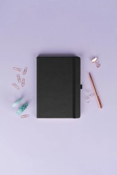 Az elegáns NOTIQUE Aprint jegyzetfüzet kiváló választás mindennapi jegyzeteléshez, tervezéshez és kreatív ötletekhez. A fekete kivitel és a diszkrét borítóstruktúra professzionális megjelenést kölcsönöz, így irodába és megbeszélésekre egyaránt illik.