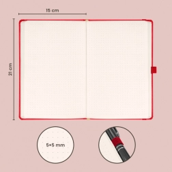 A pöttyözött oldalak rugalmasságot nyújtanak íráshoz, rajzoláshoz és bullet journalhoz. A borító felülete a legkedveltebbek közé tartozik – tartós, és lehetővé teszi a céges logók egyszerű prégelését, így céges ajándéktárgyként is kiváló.