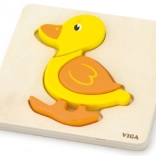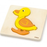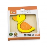 Fából készült berakós puzzle a legkisebbeknek kiskacsa motívummal. A kiskacsa mérete kb. 13 × 11 cm. A csomagolás mérete kb. 15,5 × 18 × 2 cm. Ajánlott életkor: 18 hónap+