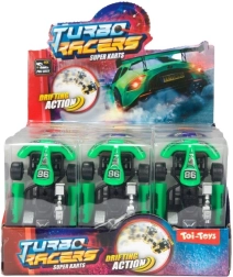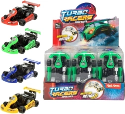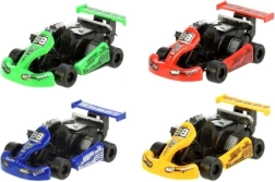 Kis műanyag gokart 9 cm hosszú élénk színekben, tökéletes ajándék kis versenyzőknek. Részletes designnal és élénk színekkel, ideális szórakozáshoz és dekorációhoz.