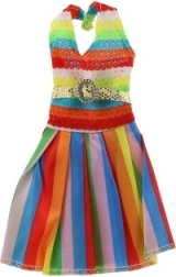A színes ruhák szivárványcsíkokkal egyedi elegancia és játékosság kombinációját kínálják, ideális hétköznapi vagy ünnepi pillanatokhoz.