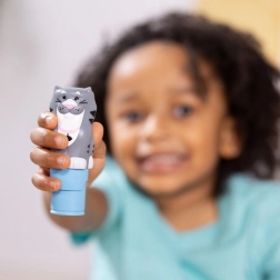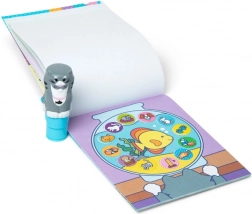 Élvezze a végtelen lehetőségeket a készletünkkel: fejbélyeg szürke macska formájában fehér orral és rózsaszín orrával, beillesztett modul 300 matricával állatos témában, valamint egy 24 oldalas színes könyv saját állatos mese létrehozásához.