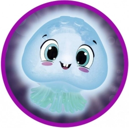 Fedezd fel a világító nyálka varázsát a bájos GLIBBI medúzával. Csak szórd be a port, öntsd fel langyos vízzel és rázd össze – pillanatok alatt türkiz nyálka lesz belőle, amely lámpafényre töltve sötétben világít. Játék után a nyálkát egyszerűen visszateheted a medúzába, így minden biztonságosan és rendezetten egyben marad.