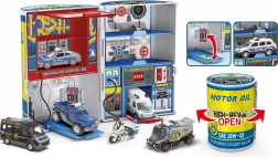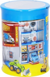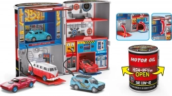 Ez az autószerviz ideális ajándék minden kis autórajongónak. Egy fém autóval érkezik, és négy különböző változatot kínál: rendőrségi, tűzoltó, építőipari és verseny. Minden jármű szabadon forgó kerekekkel rendelkezik, ami biztosítja a könnyű manőverezést.