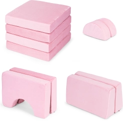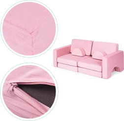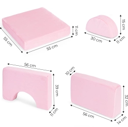 Összecsukható moduláris gyerekkanapé 2 gyermek számára, 10 párnával ECOTOYS – rózsaszín