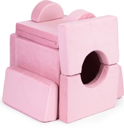 A 10 puha elemből kanapét, alagutat, hidat vagy bunkert építhetsz – fejleszti a fantáziát, a mozgáskoordinációt és az együttműködést.