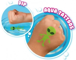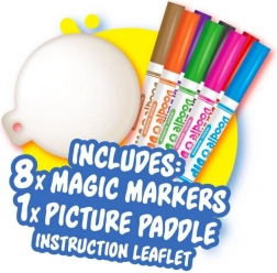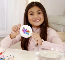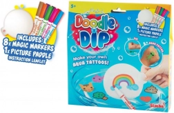 Búvárkodj bele a színek és kreativitás világába a Doodle o Dip készletünkkel, amely lehetővé teszi, hogy lenyűgöző vízi tetoválásokat készíts. Ez a készlet nyolc varázsfilctollat tartalmaz különböző színekben és egy speciális rajzoló alapot. Rajzold le a képet az alapra, majd tedd vízbe, és figyeld meg, ahogy a kép leválik és része lesz a kreativitásodnak - ideális a kézre vagy más testrészre.