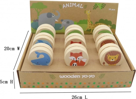 Ez a fából készült jojó kiváló minőségű anyagból készült, amely környezetbarát és hosszú élettartamot biztosít a játéknak. Méretei: 5,5x5,5x3,1 cm, ami kiválóan illeszkedik a gyermekek kezébe és könnyen kezelhető. A jojó négy szórakoztató változatban érhető el: oroszlán, róka, bálna és krokodil, ami lehetővé teszi, hogy a gyerekek kiválasszák kedvenc állatbarátjukat. Minden csomag 12 darabot tartalmaz, ami ideális csoportos tevékenységekhez vagy ajándéknak.
