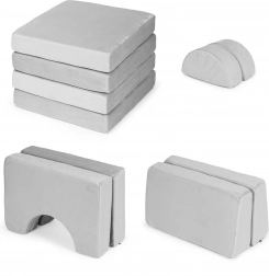 A 10 puha elemből kanapét, alagutat, hidat vagy bunkert építhetsz – fejleszti a fantáziát, a mozgáskoordinációt és az együttműködést.