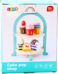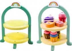 A fából készült desszertszett egy elegáns és elbűvölő játék, amely bevezeti a gyerekeket az édességek és a konyhai szerepjátékok világába. A készlet egy stílusos édességtartó állványt tartalmaz, amely dekoratív és praktikus szerepet is betölt, és varázst kölcsönöz bármely gyerekszobának vagy játéksaroknak. Az állványon különféle fa édességek vannak kiállítva, például bájos torták, cupcake-ek és piték, amelyek igényes kidolgozásukkal és részletgazdagságukkal nyűgöznek le.