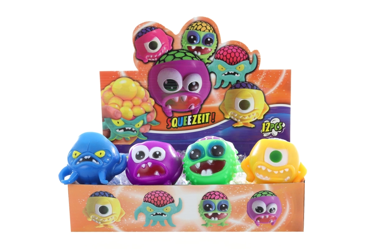 Nyomkodható antistressz szörnyecske. Összenyomáskor a nyíláson keresztül slime jön ki. Méret kb. 8 cm. 3 éves kortól.
