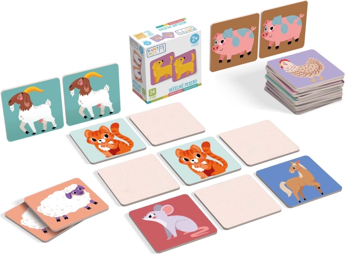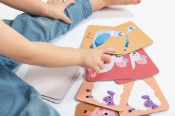 A masszív, 2 mm vastag kartonnak köszönhetően a kártyák jól tartják a formájukat, és gyakori játék mellett is tartósak. A 11 × 11 cm-es méret megkönnyíti a kezelést a kisgyermekek számára. A játék az életkorhoz igazítható: kezdjetek néhány párral, majd fokozatosan bővítsétek egészen mind a 12 párig.