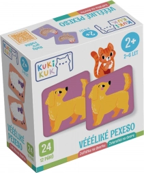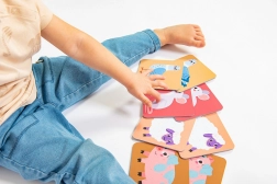 24 darab, 2 mm vastag kartonból készült, 11 × 11 cm-es erős kártya bírja az intenzív játékot otthon és az óvodában is.