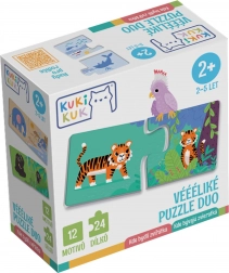 A Véééliké párosító puzzle: hol laknak az állatok egy szórakoztató, fejlesztő játék, amelyben a gyerekek megkeresik és összerakják az állat és otthona helyes párosát. A speciális illesztésnek köszönhetően csak a megfelelő képek kapcsolhatók össze, így a tanulás játékos és azonnal látható eredménnyel jár.