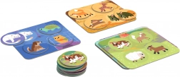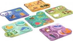 Ez a közkedvelt játék barátságos formában ismerteti meg a totyogókat 24 állattal és élőhelyeikkel – otthon, erdőben, réten, a tóparton és a fák koronájában. A nagy zsetonoknak és a 2 mm vastag kartonból készült strapabíró tábláknak köszönhetően a játék könnyen megfogható és biztonságos a kicsiknek. A csomag része továbbá szülőknek és pedagógusoknak szóló tippek és játékváltozatok.