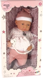 A 46 cm hosszú, aranyos baba minden gyermeket elbűvöl. Élethű megjelenést, puha testet és mozgatható végtagokat kínál. Tartozéka egy láncos cumi, amely nem veszik el, valamint egy könnyen levehető ruhácska. Remek választás az empátia és a gondoskodó készségek fejlesztéséhez.