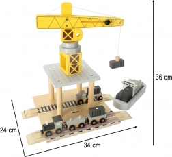 A gyerekek imádni fogják ezt a fa kikötői darut, amely lehetőséget kínál arra, hogy konténereket rakodjanak át hajókról autókra és vonatokra. A készlet számos összetevőt tartalmaz, amelyek különféle játékszcenáriókat tesznek lehetővé, fejlesztve gyermeke képzelőerejét és kézügyességét.